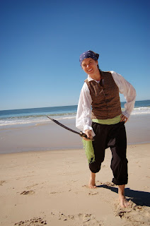 Earlier this month, I attended an event with a few members of the Australian Costumers Guild - a castaway picnic. While only a few of us where able to attend, we made the most of it and trekked out to the beach at Bribie Island, about an hour drive from my place. And how more appropriate could it be to dress as pirates and visit the beach? We all slopped on the sunscreen and put up our beach umbrellas to sit and have lunch before hunting in the shallows for seashells.