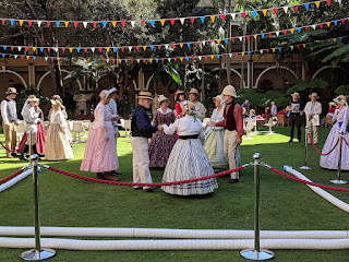 Last month I also attended the 150th Anniversary of Parliament House in Brisbane. The day was marked with a celebration and tour of the original parliament building. Still in use today, the building is a beauty from its’ era. We were invited along by the organisers to provide a bit of ambiance to the event – wearing gowns which would have been worn when the building was originally opened. It is an incredibly beautiful building and I’m glad that I got the chance to see inside. It’s not normally open to the public so it was indeed a special occasion.